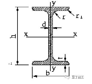 h:高度,d:腹板厚,b:翼緣板寬,t:翼緣板厚,r:內(nèi)圓角半徑, q:邊端圓角半徑