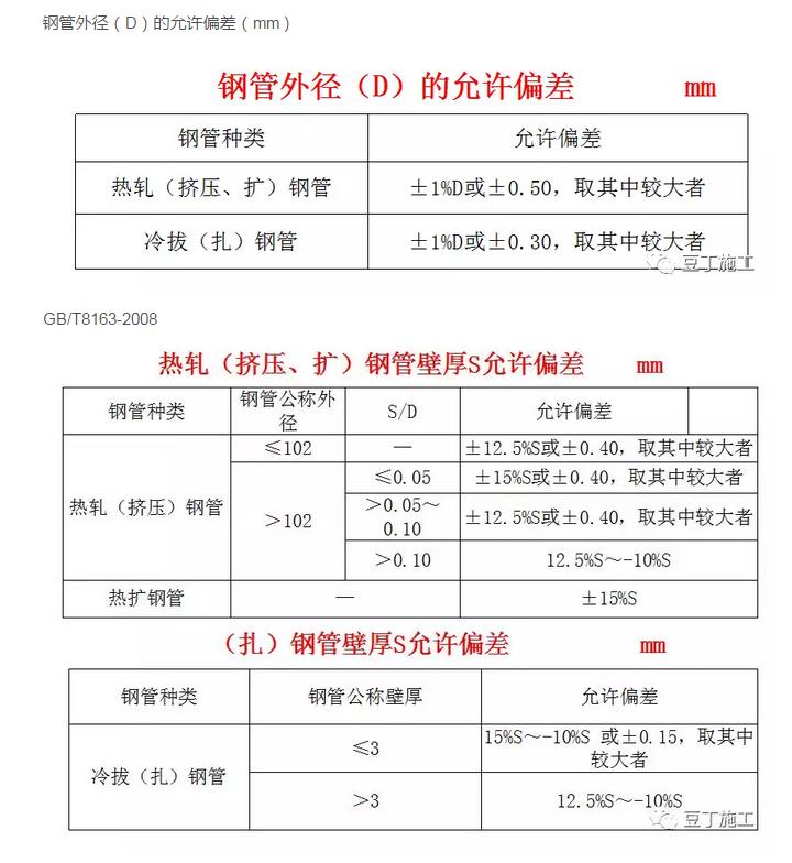 下表為鋼管的外徑允許偏差,熱軋鋼管壁厚允許偏差,,熱擴鋼管壁厚允許偏差