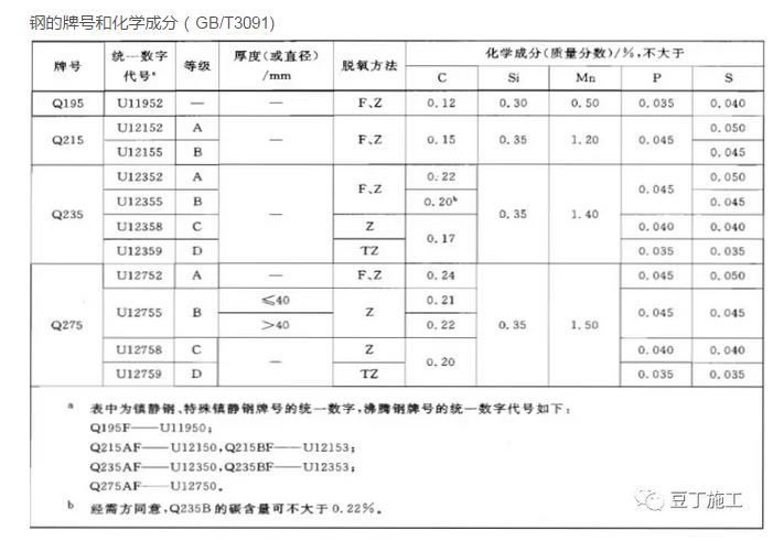下表為鋼材的牌號與化學成分