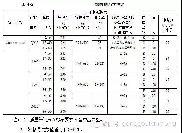 (2)伸長率比表4-2規(guī)定的數(shù)值低3%以內(nèi)時(shí)容許使用,但不宜用于考慮塑性變形發(fā)展的構(gòu)件。