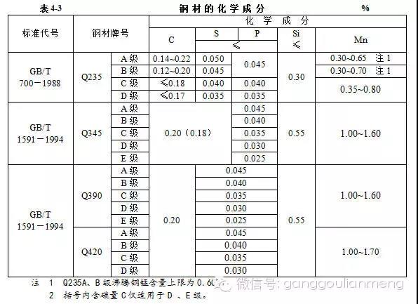 2. 鋼材的化學(xué)成分容許按表4—3與表4—4規(guī)定的標(biāo)準(zhǔn)有一定的偏差。